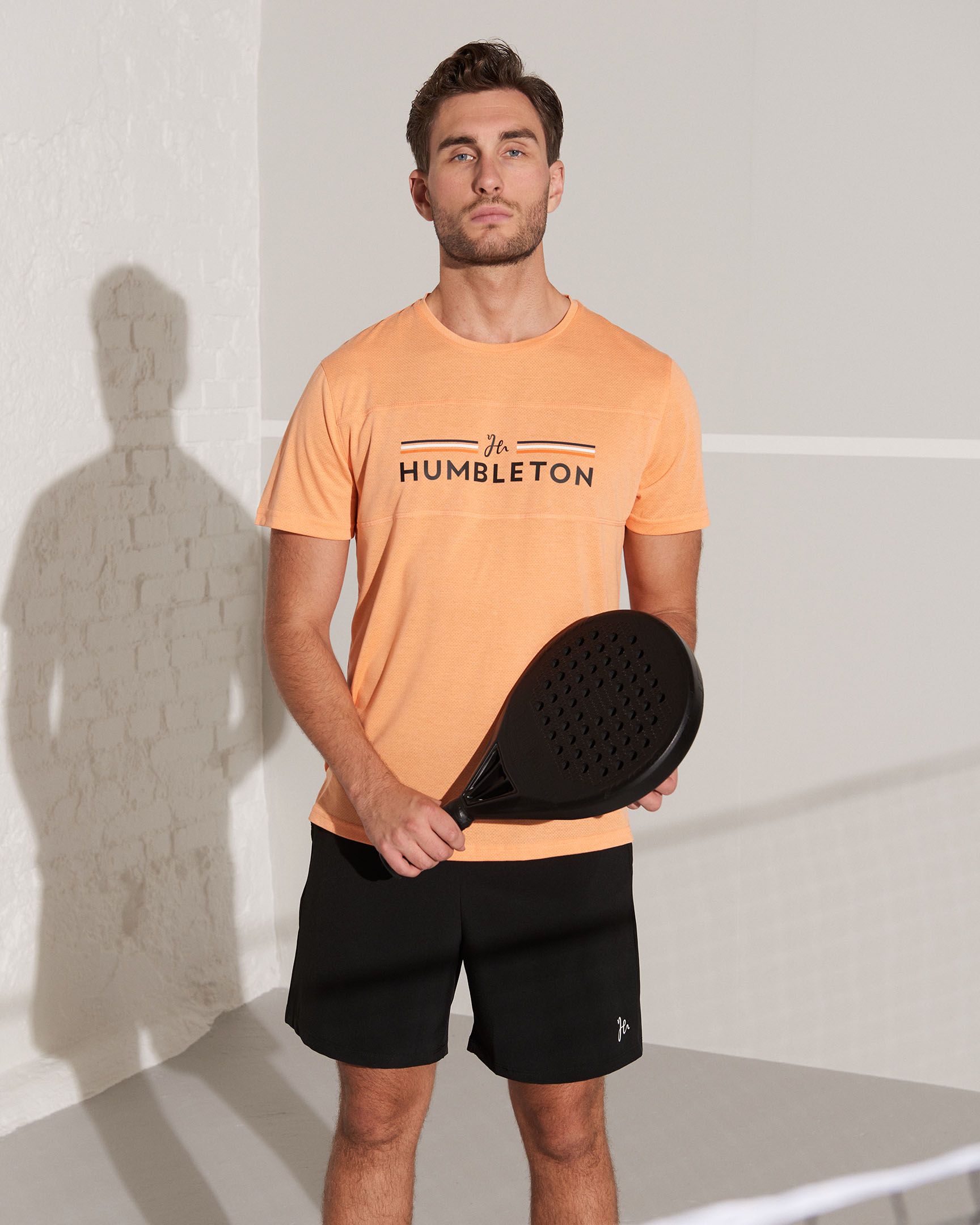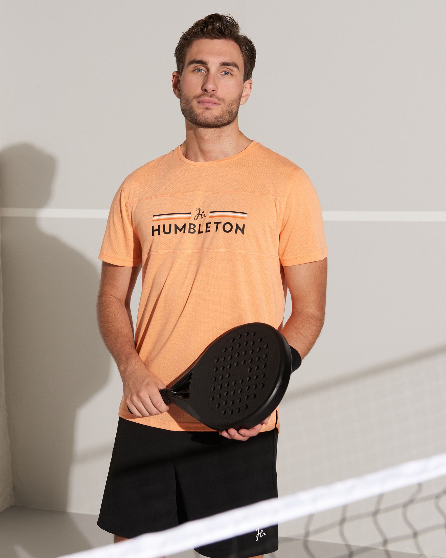 A comfortable t-shirt for padel produced in Humbleton’s own innovative functional fabric. The fabric feels soft against the body, yet has the features to keep you comfortable throughout your workout. The Franky Flag Tee creates the right style for your next padel mission.