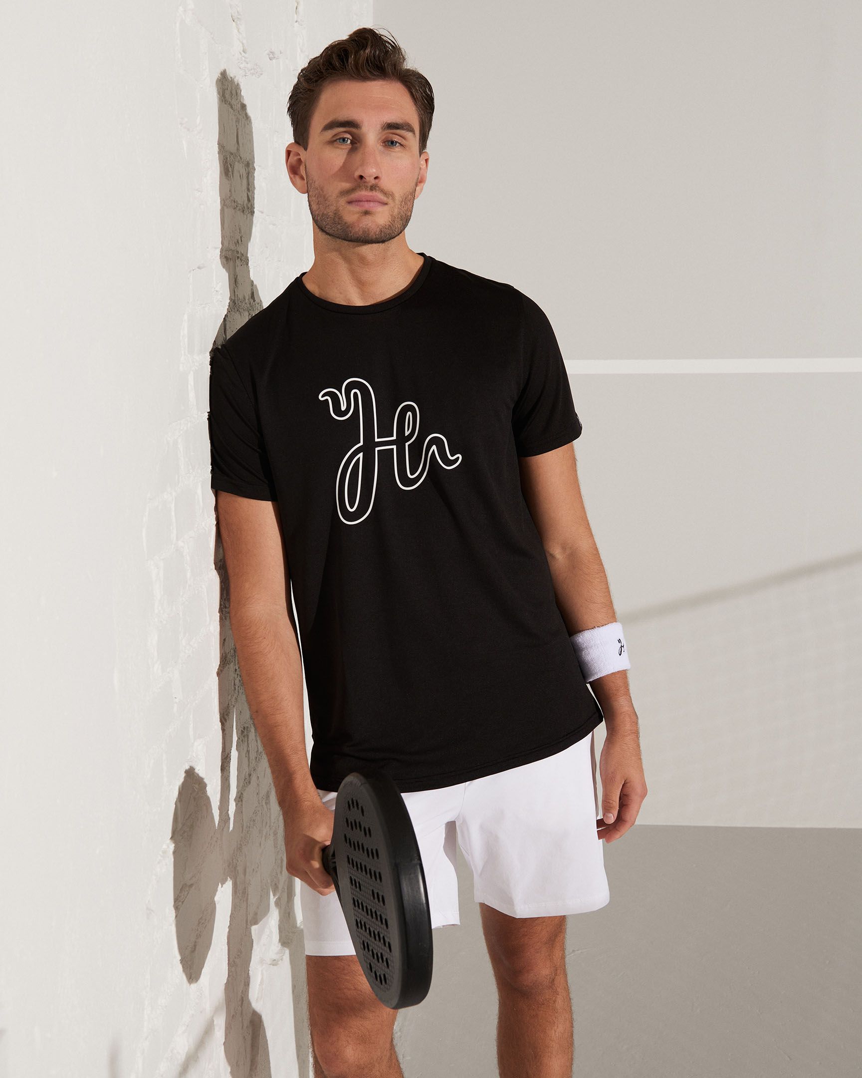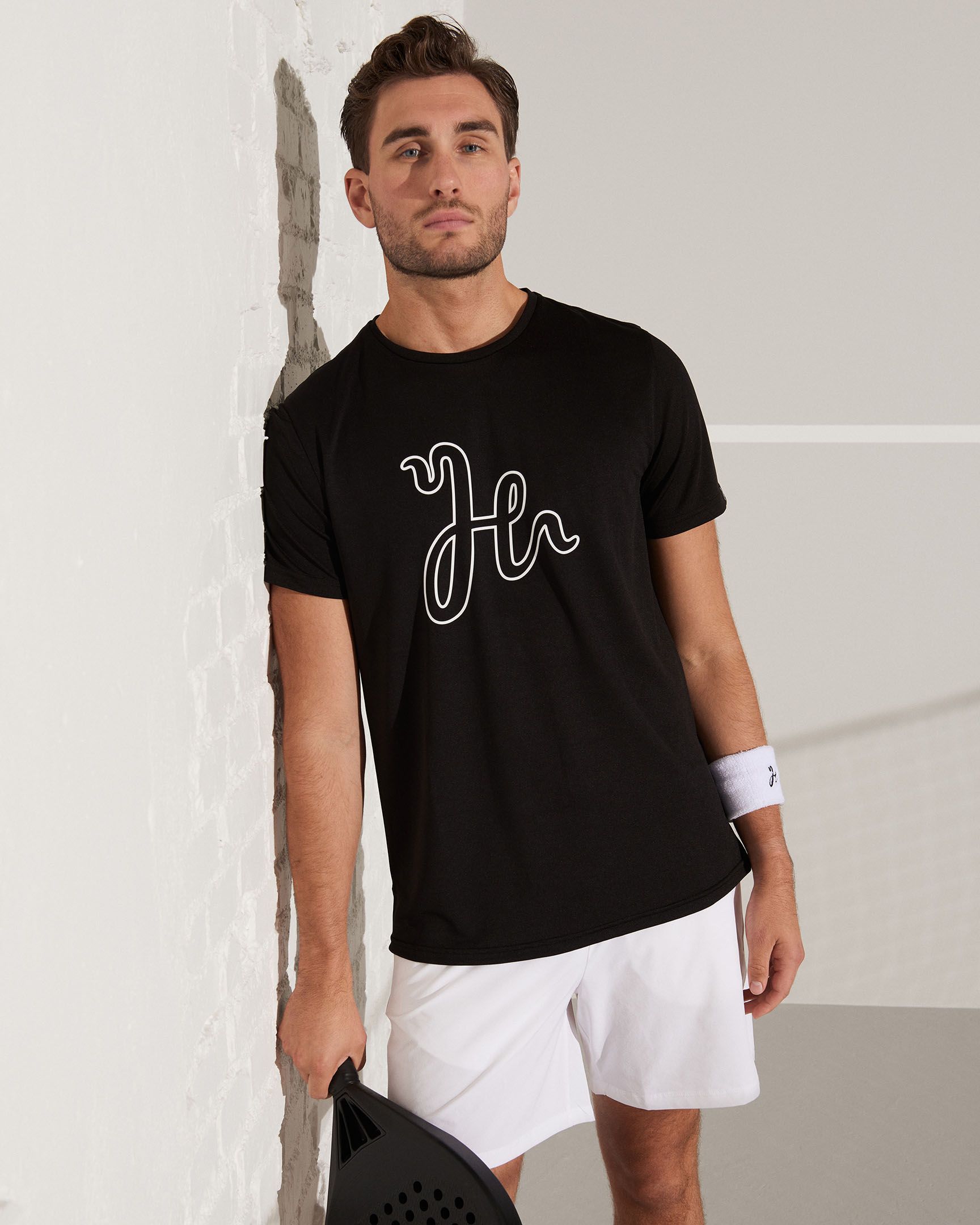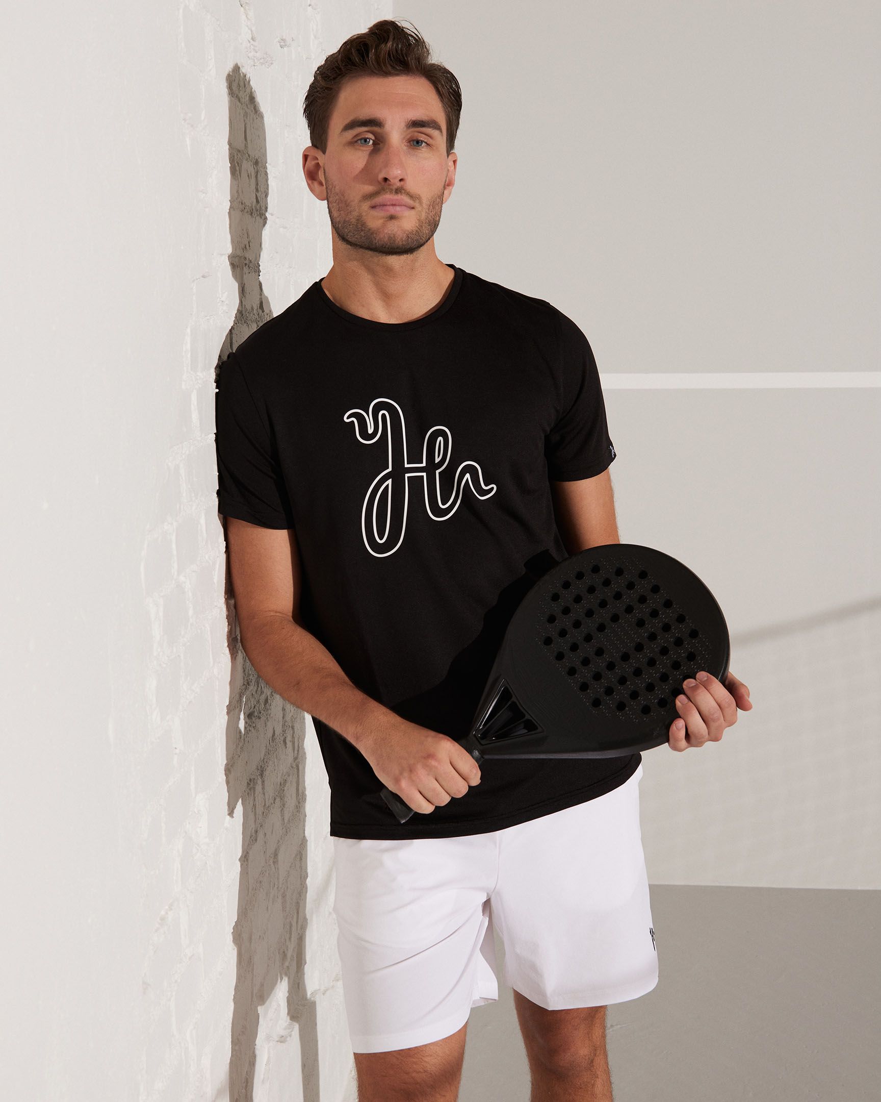A padel t-shirt made from Humbleton’s lightweight Quick Dry PX Jersey with a large outline logo on the chest. The Henry Performance Tee offers a fit made for tough padel matches.