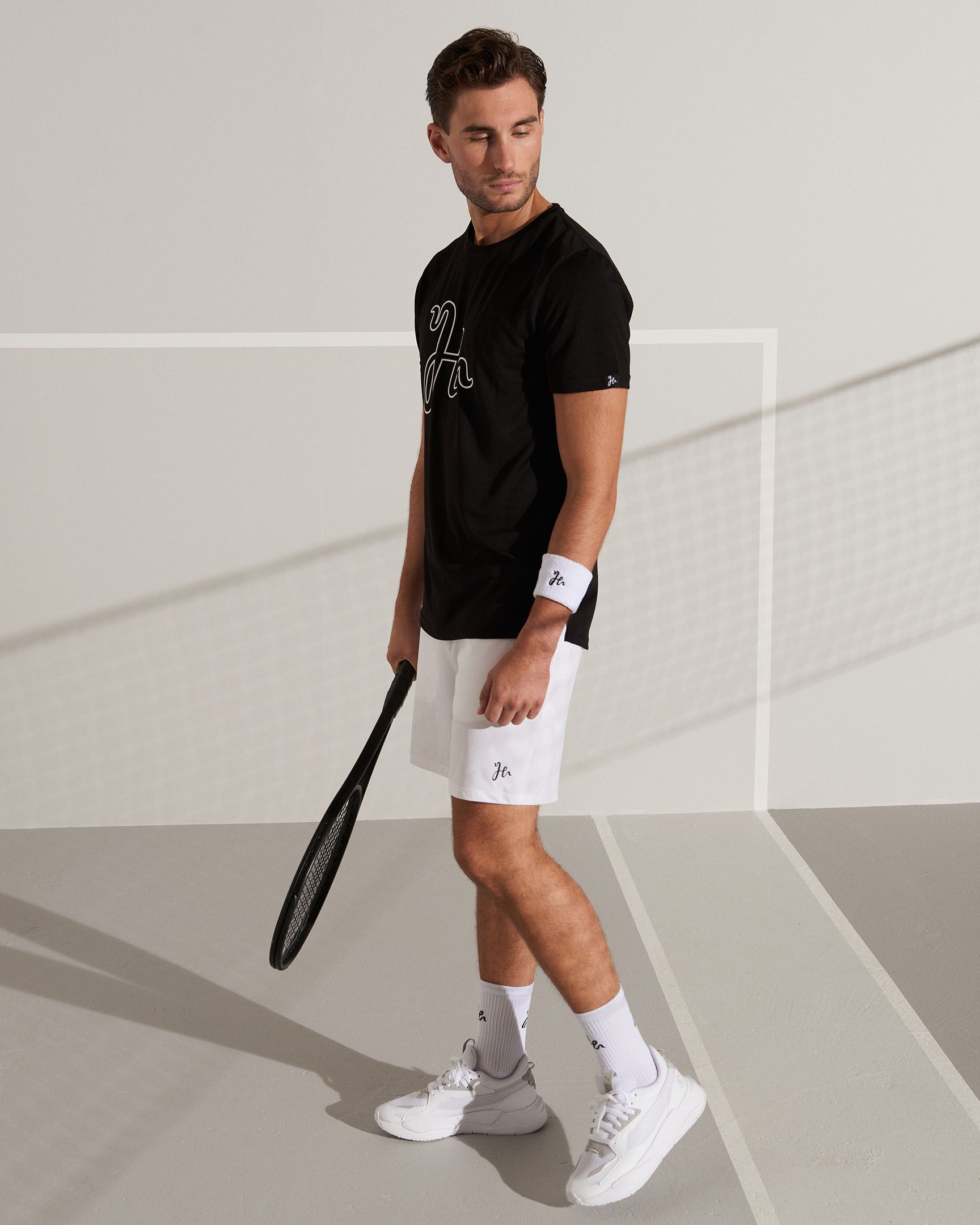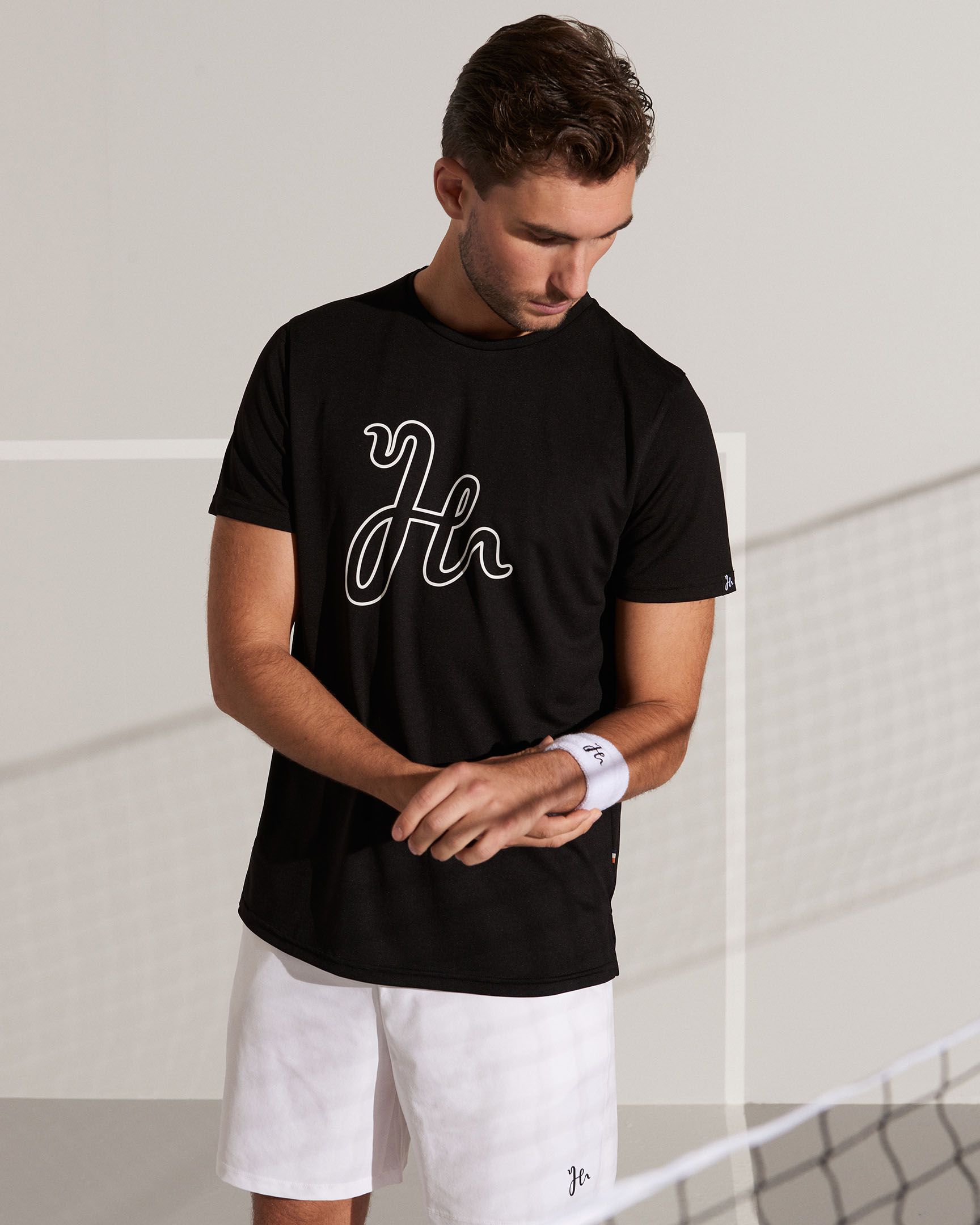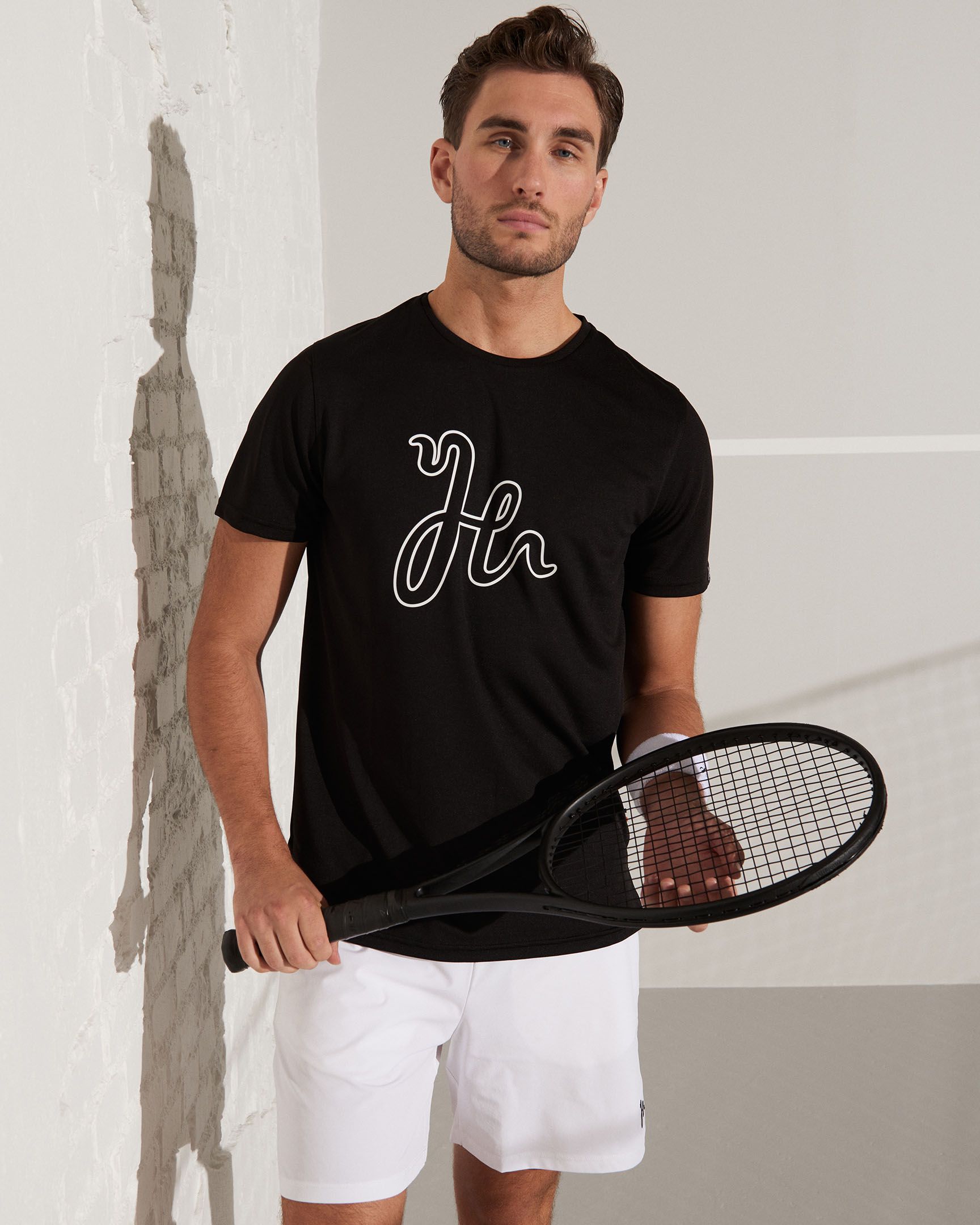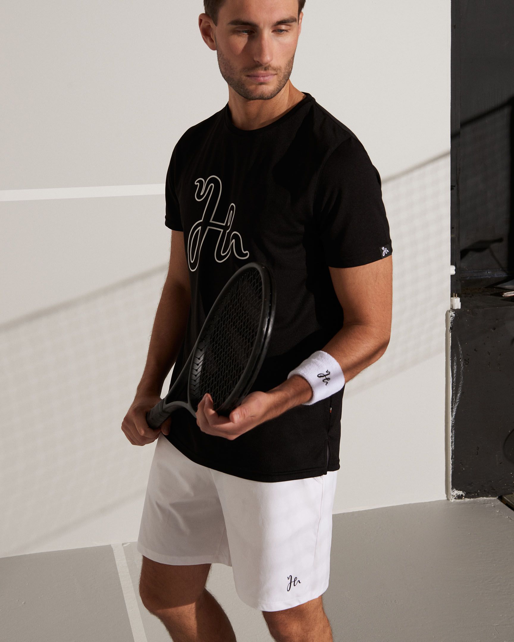 A padel t-shirt made from Humbleton’s lightweight Quick Dry PX Jersey with a large outline logo on the chest. The Henry Performance Tee offers a fit made for tough padel matches.