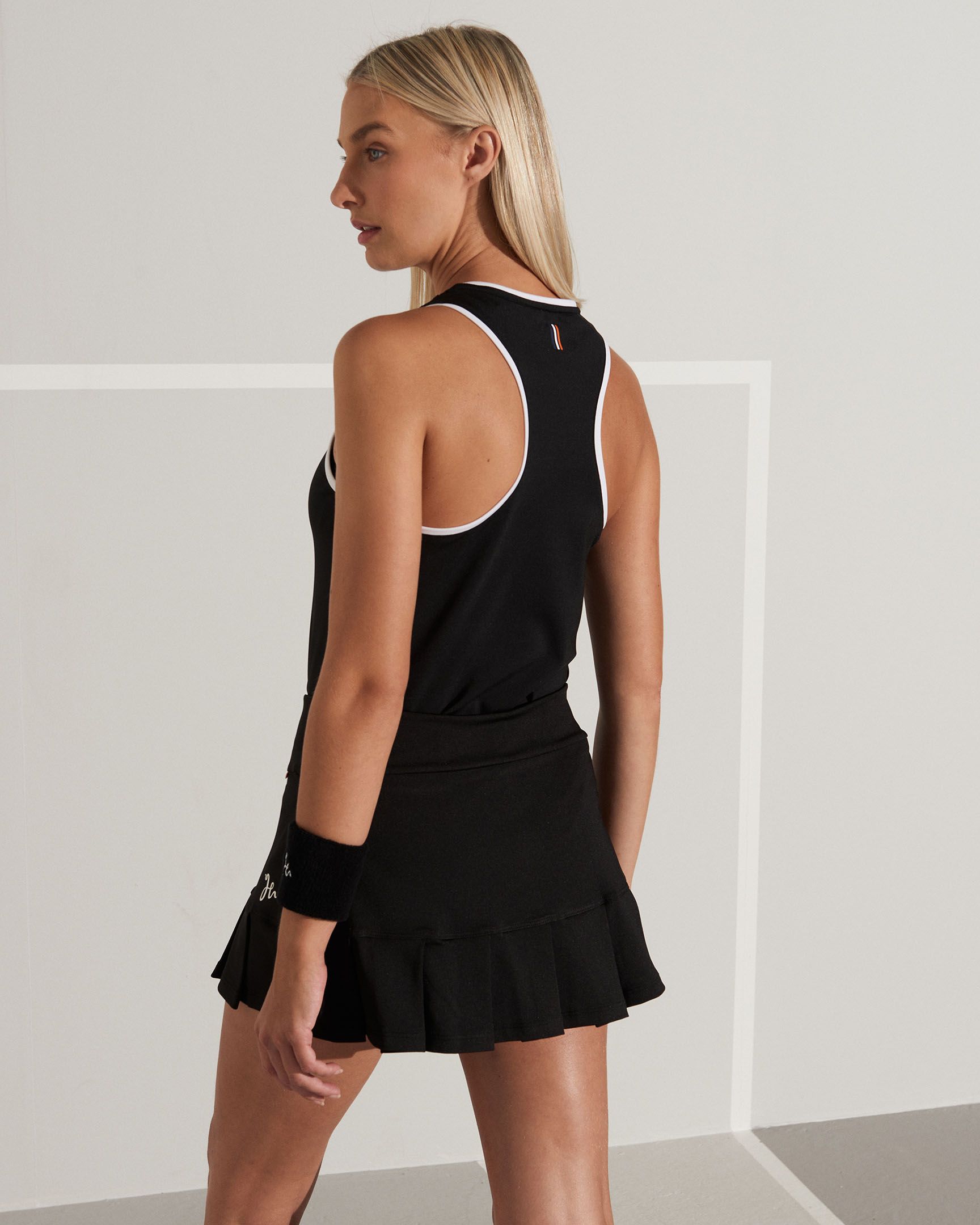 Elegant Sally Flow Skirt, the padel skirt with stylish design and beautiful details. The Sally Flow Skirt has a high waist for comfort and a wider pleat at the bottom for the right look. Right, both on and next to the padel court.