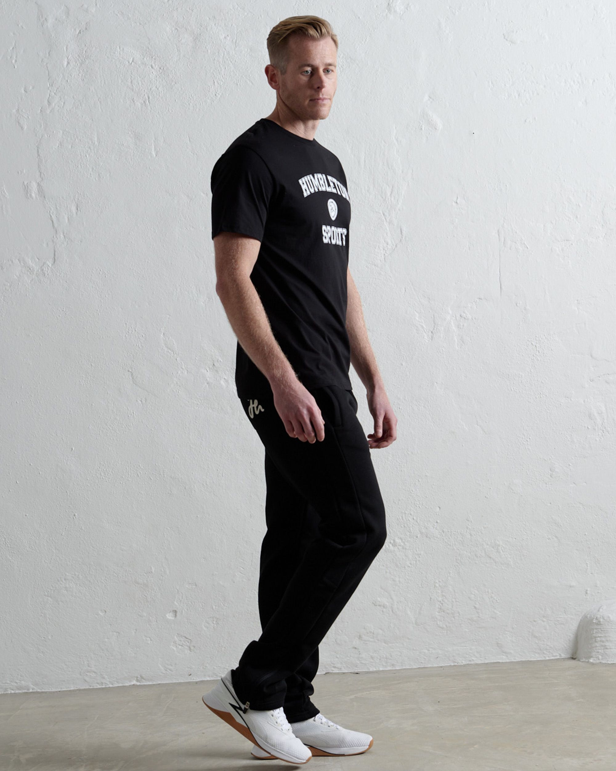 Dylan Sweatpants är sköna träningsbyxor som är helt rätt på väg till träningen, under uppvärmningen och efter padelmatchen. Med hjälp av den svarta dragkedjan på benen kan du ta av dig byxorna utan att ta av dig skorna när uppvärmningen är klar.