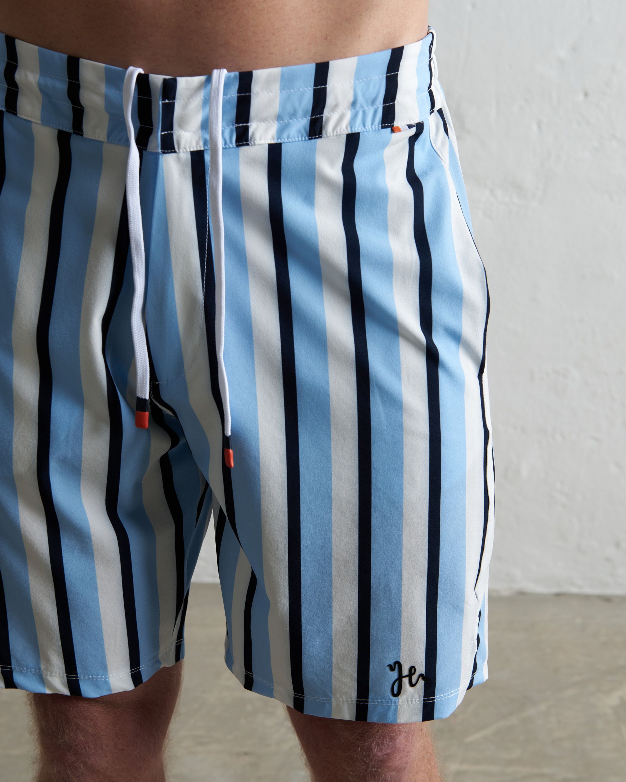 - Färg: Blå/Vit randiga, vit snörning samt vävd flag-label